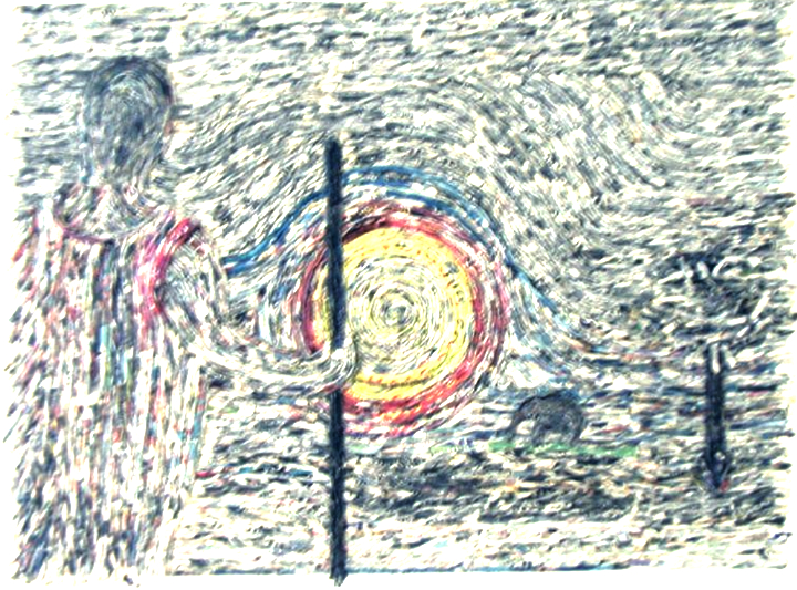 Scene on The Masai-Mara – Newspaper strips on Canvas.